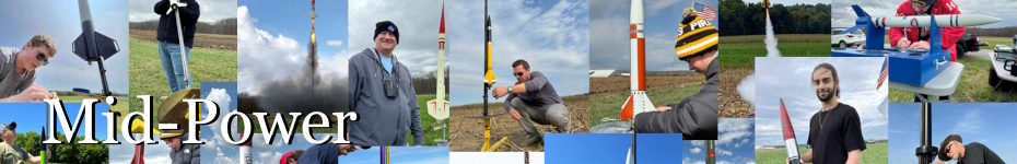 Mid-power rocketry is often the next step for many club members who are seeking to expand their rocketry skills. This class of rockets often involves the use of reloadable motors, switching from launch lugs to rail buttons, and may include the use of electronics to assist in recovery. ( Altimeters for dual deployment, Chute release mechanisms, etc.)