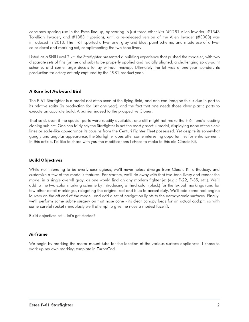 Updating the Estes F-61 Starfighter